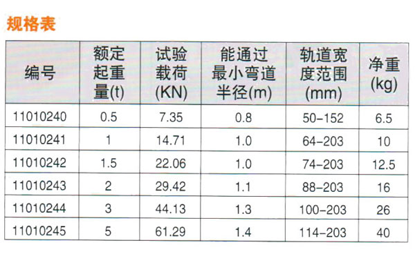 3、圓弧形設計的車輪輪緣,廣泛適用于I、H型鋼或其他自制軌道;