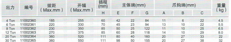 一體式液壓拉馬規格表: