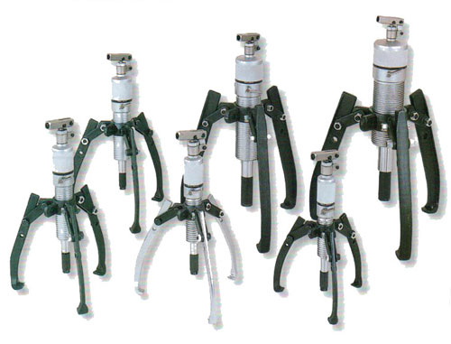 8、20Ton與30Ton之高出力拉馬,更具有兩段式楊升專利設計,第一段為快速揚升,可節省心軸推桿接觸軸心的準備時間;當心軸推桿與軸心相接觸時,拉馬自動轉換為第二階段-高壓出力,此可大幅度節省搖桿動作之時間與次數,快速的將工件拆卸完成。